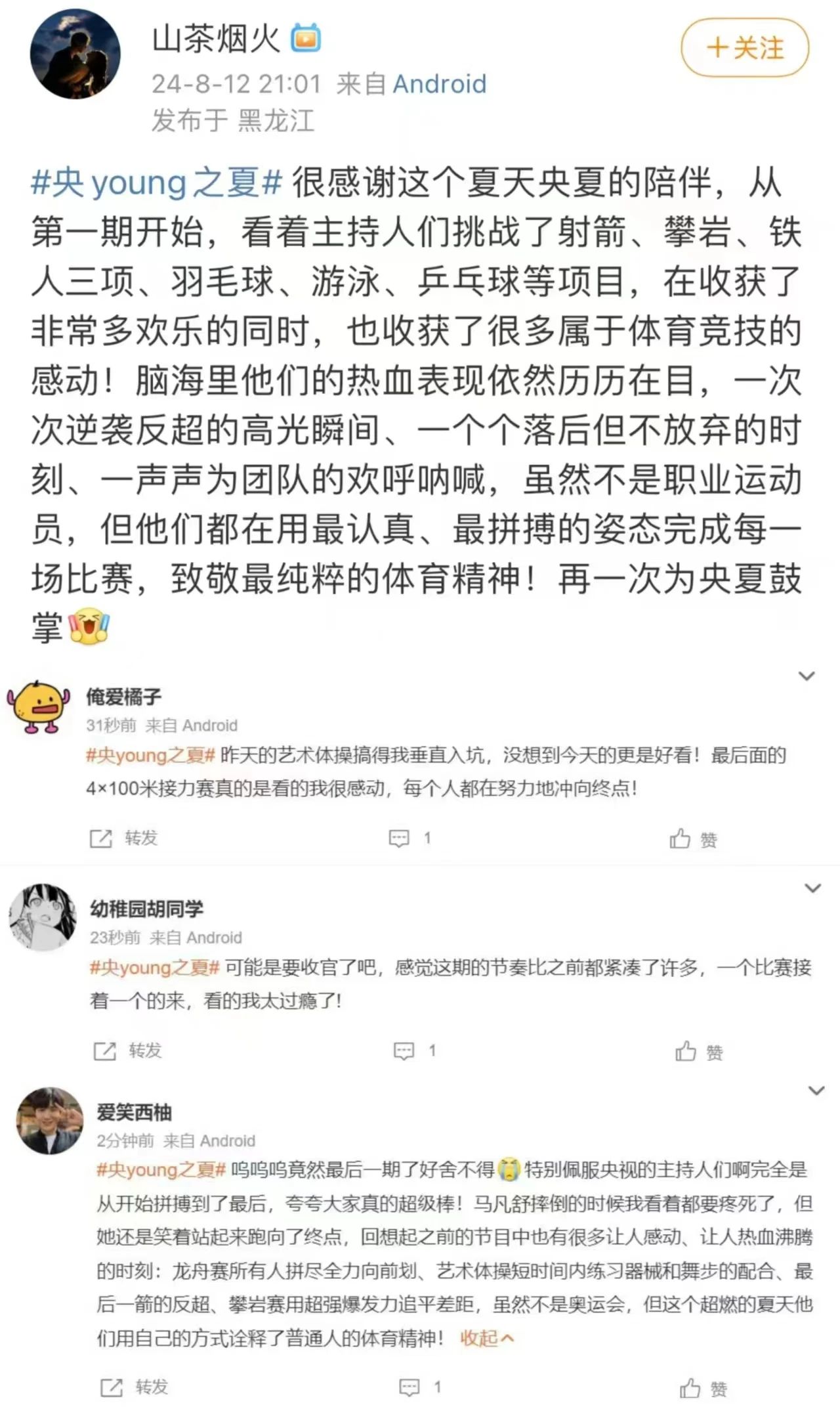 专业化的守正和模式上的创新,确保了《央young之夏》这个焕新升级IP的生命力,而节目形式、内容表达和营销手段的不断探索,则是全面提升观众和奥运,观众和体育的互动参与感,促进全民健康“精气神”的提振。