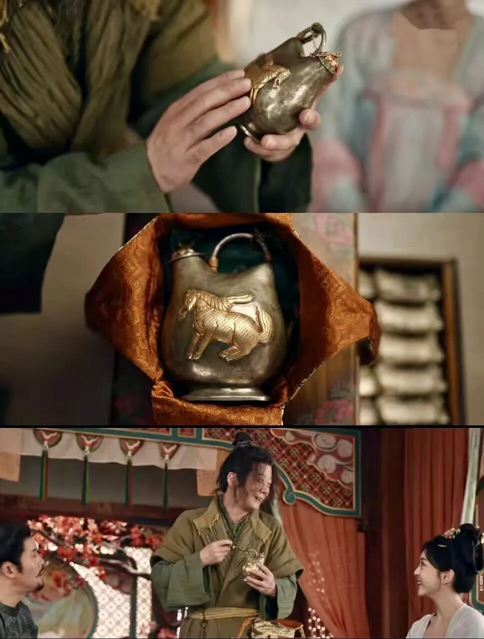 第四单元《诺皋记》中,不少网友都被裴喜君送给费鸡师的精美酒壶给惊艳到了,原型唐代鎏金舞马衔杯纹银壶,现藏于陕西历史博物馆……